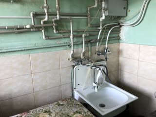 В комнате требуется ремонт. На кухне есть место для собственной газ.плиты и стиральной машины, можно установить собственный бойлер.